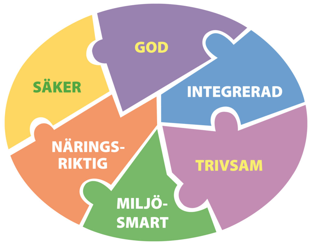 I så stor utsträckning som möjligt lagas maten från grunden. En till två dagar i veckan serveras vegetarisk lunch och målet är att använda så mycket ekologiska och närproducerade produkter som möjligt.